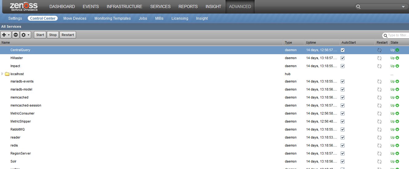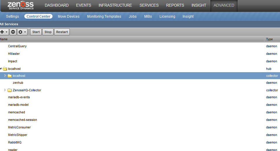 In the All Services area, select the collector to modify. Each collector has a zenping service, but the configuration option is set on the collector level, rather than the service level.
