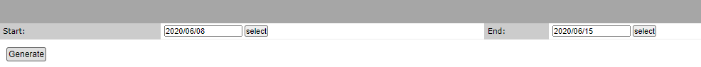 Start Date / End Date: The first and last dates of the range of dates to include in the report. To select a date from a calendar, click select. The default range is the week ending with the current date.